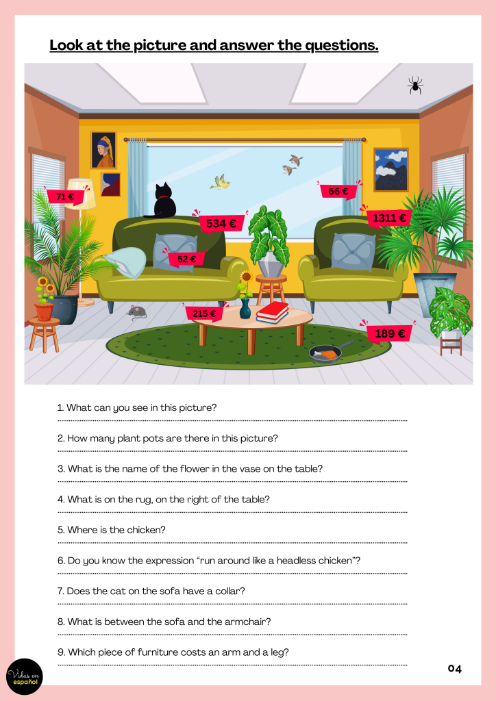– do osób na poziomie początkującym i średniozaawansowanym (A1-B1), które chcą poszerzyć lub powtórzyć słownictwo z różnych dziedzin. Stworzyłam go specjalnie z myślą o osobach, które mają trudności z mówieniem po angielsku. Spotkałam na swojej drodze wielu uczniów, którzy znali wiele słów i rozmaitych wyrażeń, ale bali się mówić. Przejście do praktyki przy pomocy opisów jest najłatwiejszą i najskuteczniejszą rzeczą, jaką można zrobić, bo nie trzeba myśleć o tym, co chce się powiedzieć, można po prostu zrobić pierwszy krok, opowiadając o rzeczach, które się widzi – opisując obrazek 🙂 A następnie przejść przez kolejne arkusze o różnym stopniu trudności i w ten sposób poszerzać swoje umiejętności.